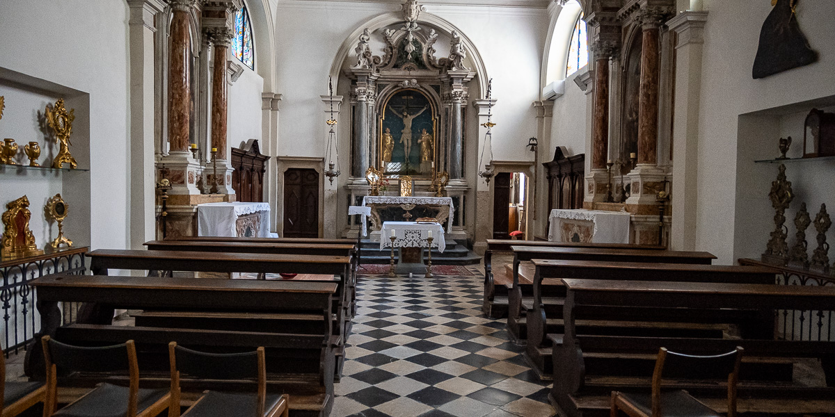 Cerkev je ena najstarejših v Piranu, v 13. in 14. stoletju pa je bila med najvažnejšimi cerkvenimi stavbami v mestu. Tu je imela sedež Bratovščina za srečno zadnjo uro, ki je molila in imela relikvije v glavni dvorani cerkve in tudi na podstrešju. V notranjosti cerkve so poleg skulptur svetega Štefana in svetega Lovrenca na oltarjih še slike slikarjev Jakoba in Mateja Palme.
